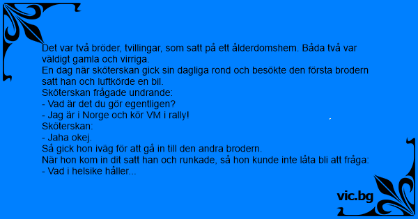 Det var två bröder, tvillingar, som satt på ett ålderdomshem. Båda två var väldigt gamla och virriga.