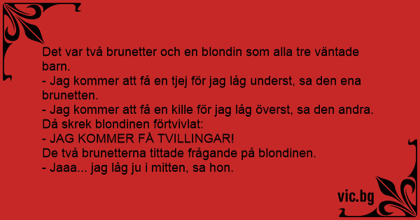 - Jag kommer att få en tjej för jag låg underst, sa den ena brunetten.