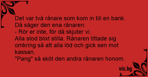 Det var två rånare som kom in till en bank. Då säger den ena rånaren: