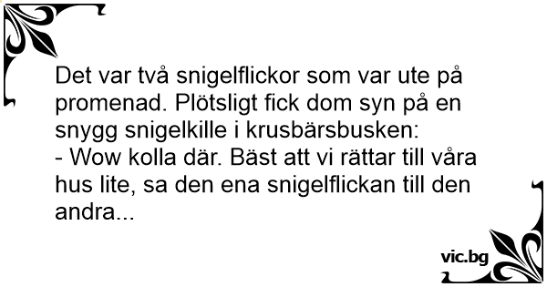 Det var två snigelflickor som var ute på promenad. Plötsligt fiск dom syn på en snygg snigelkille i krusbärsbusken: