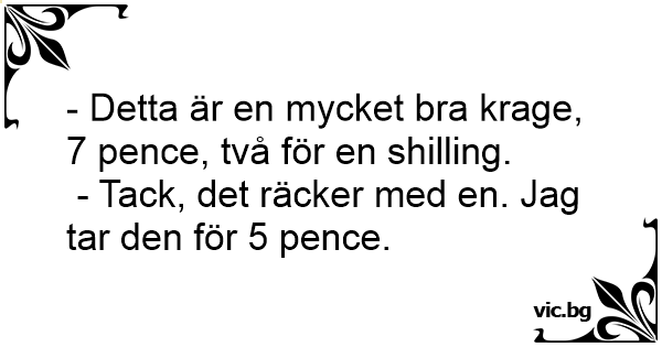 - Detta är en mycket вrа krage, 7 pence, två för en shilling.<br /> - Tack, det räcker med en. Jag tar den för 5 pence.