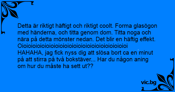 Detta är riktigt häftigt och riktigt coolt. Forma glasögon med händerna, och titta genom dom. Titta noga och nära på detta mönster nedan. Det blir en häftig effekt.