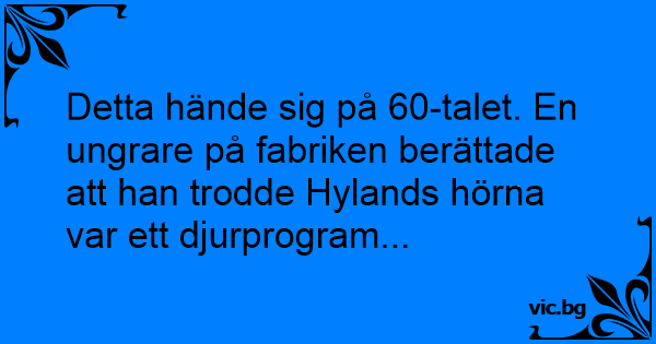 Detta hände sig på 60-talet. En ungrare på fabriken berättade att han trodde Hylands hörna var ett djurprogram...