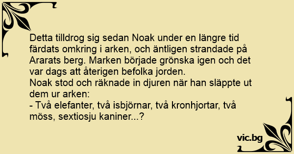 Noak stod och räknade in djuren när han släppte ut dem ur arken:
