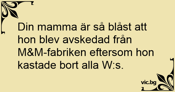 Din mamma är så blåst att hon blev avskedad från M&M-fabriken eftersom hon kastade bort alla W:s.