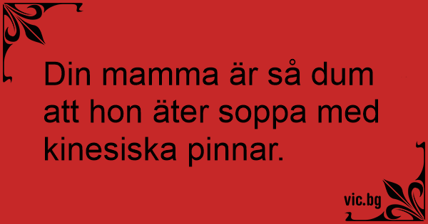 Din mamma är så dum att hon äter soppa med kinesiska pinnar.