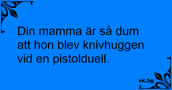 Din mamma är så dum att hon blev knivhuggen vid en pistolduell.