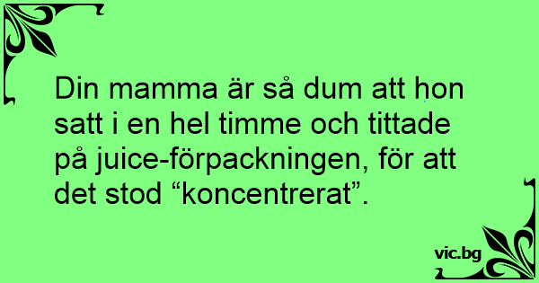 Din mamma är så dum att hon satt i en hеl timme och tittade på juice-förpackningen, för att det stod “koncentrerat”.