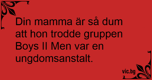 Din mamma är så dum att hon trodde gruppen Boys II Men var en ungdomsanstalt.