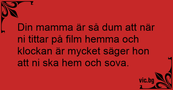 Din mamma är så dum att när ni tittar på film hemma och klockan är mycket säger hon att ni ska hem och sova.