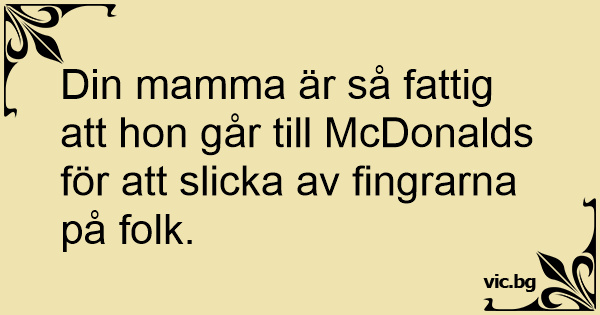 Din mamma är så fattig att hon går till McDonalds för att slicka av fingrarna på folk.