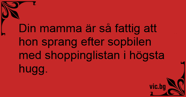 Din mamma är så fattig att hon sprang efter sopbilen med shoppinglistan i högsta hugg.
