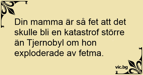 Din mamma är så fet att det skulle bli en katastrof större än Tjernobyl om hon exploderade av fetma. 1 0 0 Din mamma-skämt