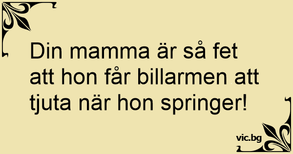 Din mamma är så fet att hon får billarmen att tjuta när hon springer!