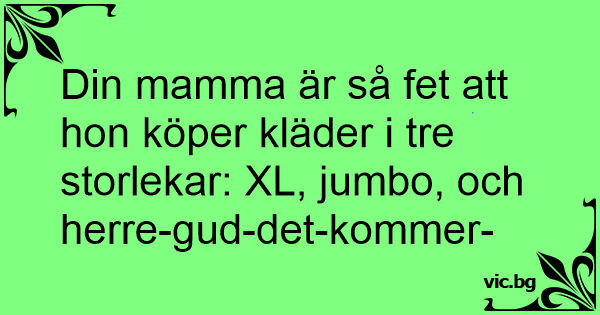 Din mamma är så fet att hon köper kläder i tre storlekar: XL, jumbo, och herre-gud-det-kommer-emot-oss!