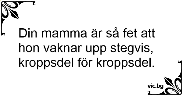 Din mamma är så fet att hon vaknar upp stegvis, kroppsdel för kroppsdel.