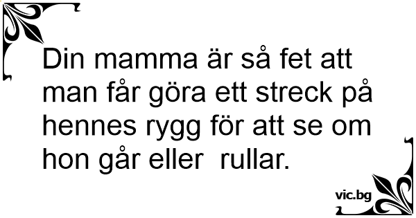 Din mamma är så fet att man får göra ett streck på hennes rygg för att se om hon går eller rullar.