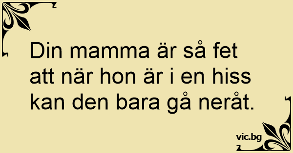 Din mamma är så fet att när hon är i en hiss kan den bara gå neråt. 1 0 0 Din mamma-skämt Föräldraskämt