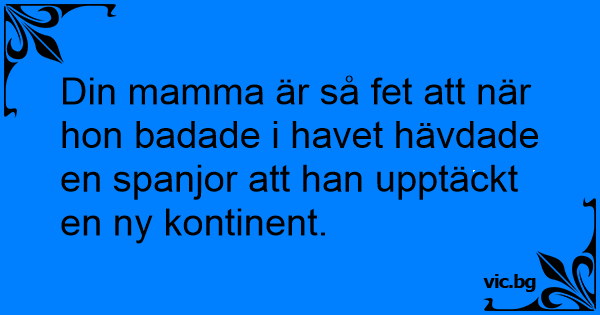Din mamma är så fet att när hon badade i havet hävdade en spanjor att han upptäckt en ny kontinent.