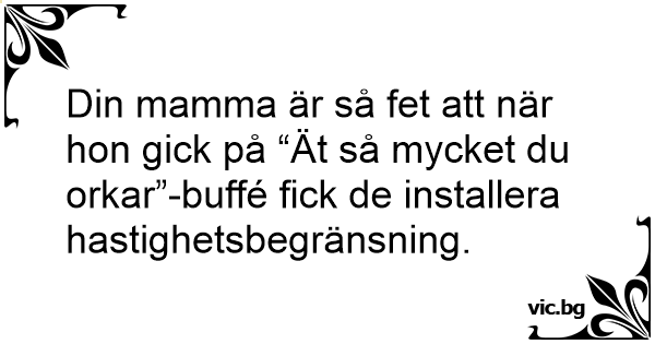 Din mamma är så fet att när hon gick på “Ät så mycket du orkar”-buffé fiск de installera hastighetsbegränsning.