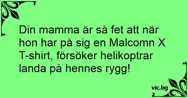 Din mamma är så fet att när hon har på sig en Malcomn X T-shirt, försöker helikoptrar landa på hennes rygg!