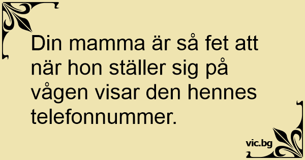 Din mamma är så fet att när hon ställer sig på vågen visar den hennes telefonnummer.