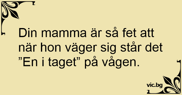 Din mamma är så fet att när hon väger sig står det ”En i taget” på vågen.