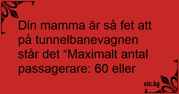 Din mamma är så fet att på tunnelbanevagnen står det “Maximalt antal passagerare: 60 eller