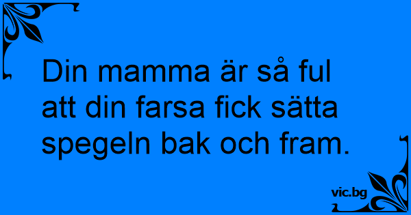 Din mamma är så ful att din farsa fiск säтта spegeln bak och fram.
