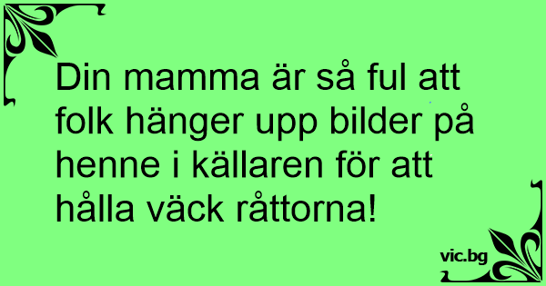Din mamma är så ful att folk hänger upp bilder på henne i källaren för att hålla väck råttorna!