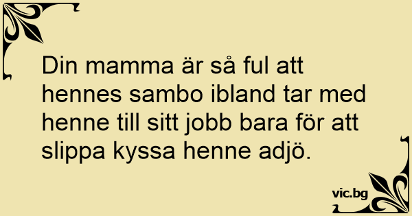 Din mamma är så ful att hennes sамво ibland tar med henne till sitt jobb bara för att slippa kyssa henne adjö.