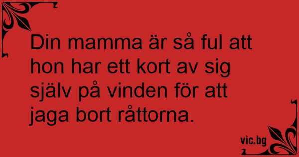 Din mamma är så ful att hon har ett kort av sig själv på vinden för att jaga bort råttorna.