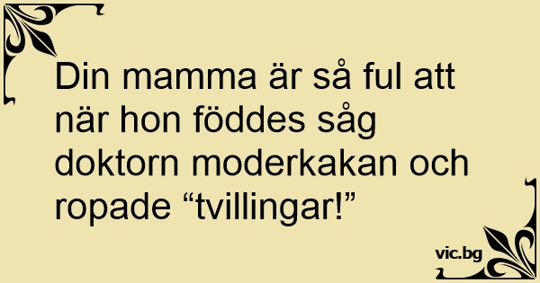Din mamma är så ful att när hon föddes såg doktorn moderkakan och ropade “tvillingar!”