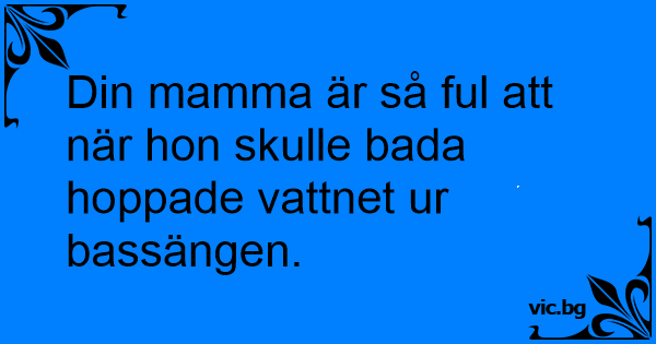 Din mamma är så ful att när hon skulle bada hoppade vattnet ur bassängen.