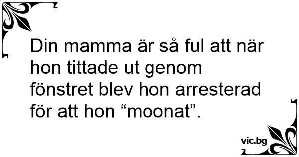 Din mamma är så ful att när hon tittade ut genom fönstret blev hon arresterad för att hon “moonat”.