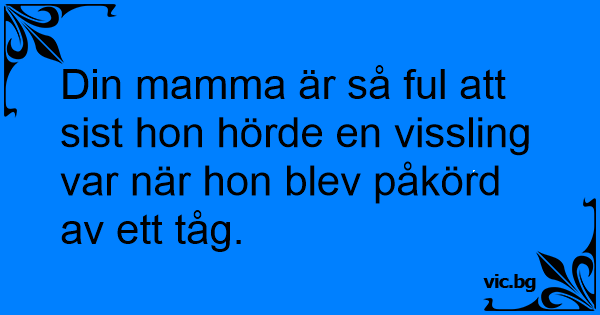 Din mamma är så ful att sist hon hörde en vissling var när hon blev påkörd av ett tåg.