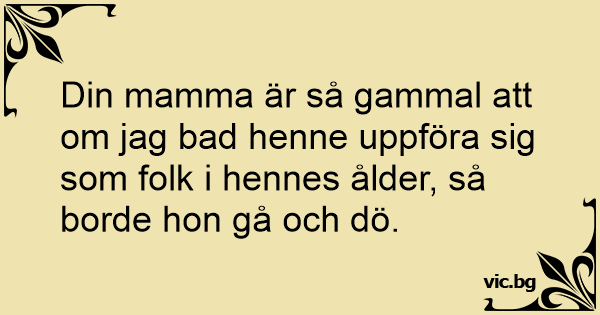 Din mamma är så gammal att om jag bad henne uppföra sig som folk i hennes ålder, så borde hon gå och dö.