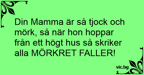Din Mamma är så tjock och mörk, så när hon hoppar från ett högt hus så skriker alla MÖRKRET FALLER!