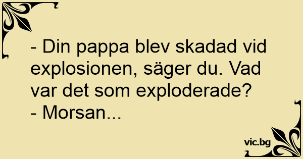 - Din pappa blev skadad vid explosionen, säger du. Vad var det som exploderade?