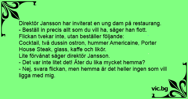 Direktör Jansson har inviterat en ung dam på restaurang.