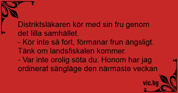 - Kör inte så fort, förmanar frun ängsligt. Tänk om landsfiskalen kommer.