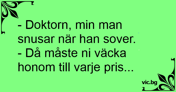 - Doktorn, min man snusar...