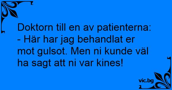 - Här har jag behandlat er mot gulsot. Men ni kunde väl ha sagt att ni var kines!