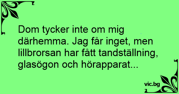 Dom tycker inte om mig därhemma. Jag får inget, men lillbrorsan har fått tandställning, glasögon och hörapparat...