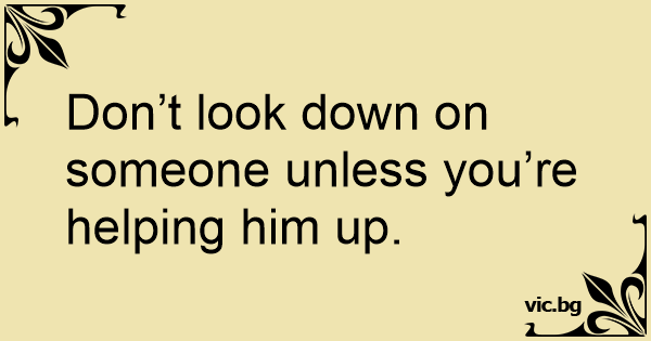 Don’t look down on someone unless you’re helping him up.