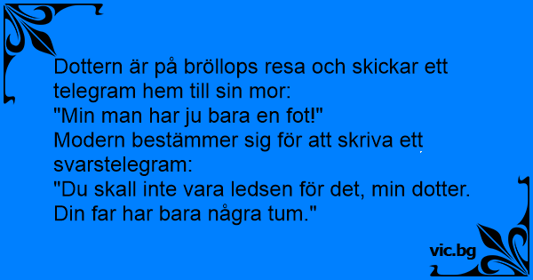 Dottern är på bröllops resa och skickar ett telegram hem till sin mor: