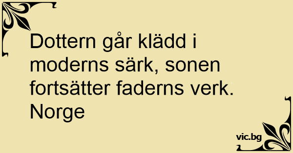 Dottern går klädd i moderns särk, sonen fortsätter faderns verk.