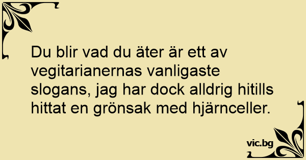 Du blir vad du äter är ett av vegitarianernas vanligaste slogans, jag har dock alldrig hitills hittat en grönsak med hjärnceller.