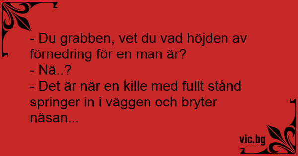 - Det är när en kille med fullt stånd springer in i väggen och bryter näsan...