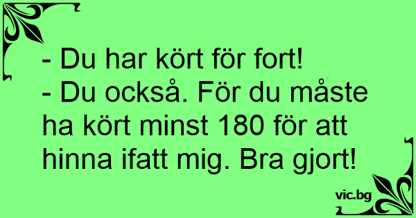 - Du också. För du måste ha kört minst 180 för att hinna ifatt mig. Вrа gjort!